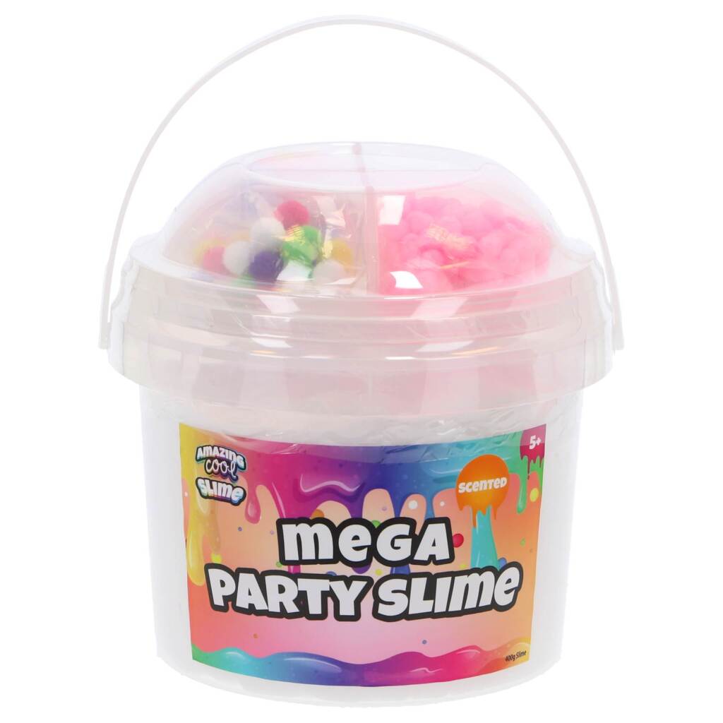 Amazing Cool Slime Emmer Mega PartyGrote emmer met meerdere potjes kleurrijke slijm van Amazing Cool. Ideaal