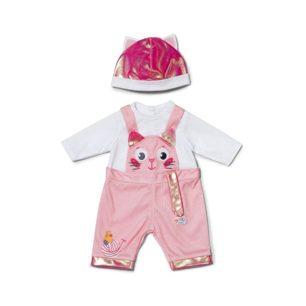 Baby Born kat nesie met muts (roze-wit), voor poppen van 43 cm. Geschikt voor kinderen vanaf 3 jaar.