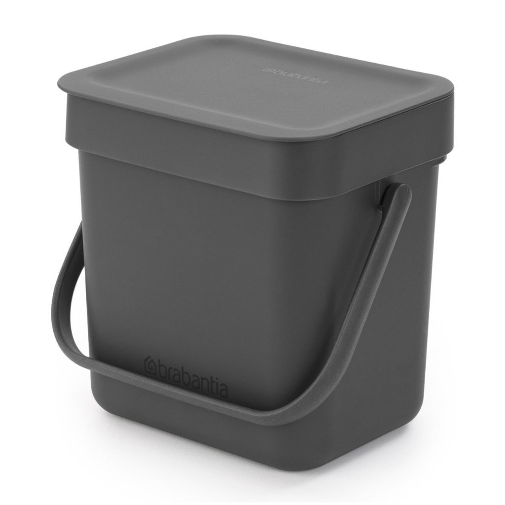 Dit compacte afvalbakje 3L is ideaal voor klein biologisch afbreekbaar afval. Met een openstaande deksel om makkelijk voedselresten weg in te gooien. Met ergonomisch handvat voor het makkelijk verplatsen van de bak of het weggooien van het afval. Makkelijk te reinigen met een vochtige doek. Kleur: grijs.