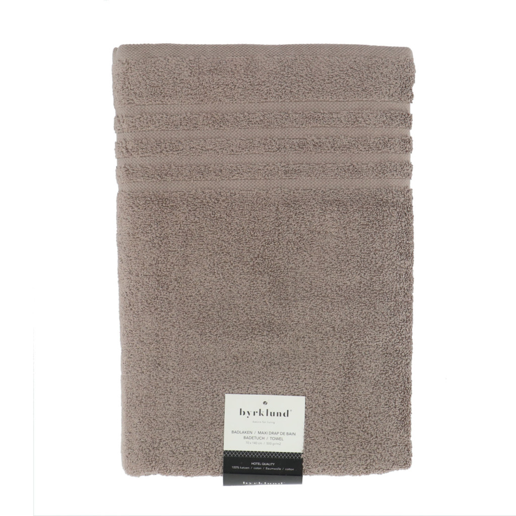 Byrklund badhanddoek van 70 x 140 cm, kleur: taupe. Gemaakt van 100% katoen en heeft een kwaliteit van 500 gr/m².