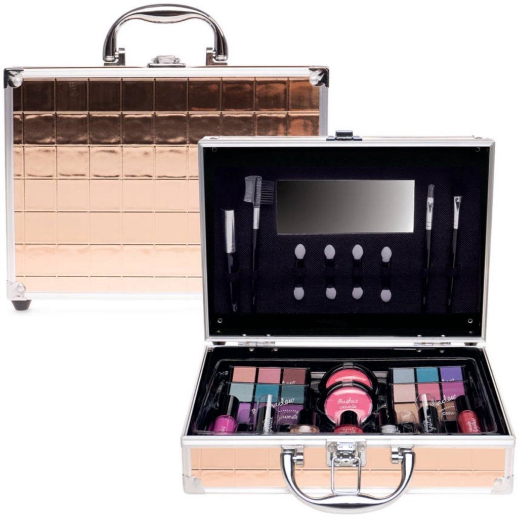 Casuelle make-up koffer champagne met o.a. oogschaduw, spiegel, kwastjes, nagellak en lipgloss