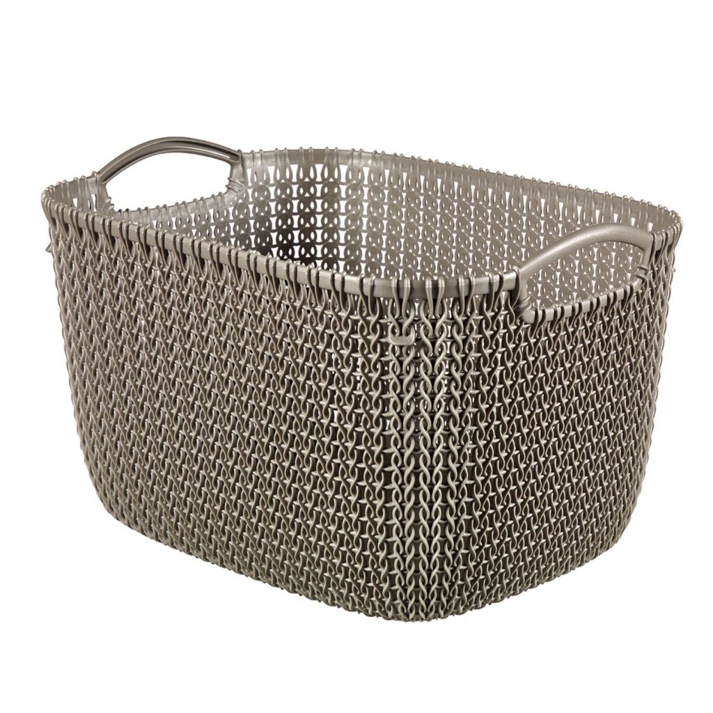 Met zijn comfortabele handgrepen en exclusieve Knit-look structuur is ditbruine Curver mandje van19 liter een ware