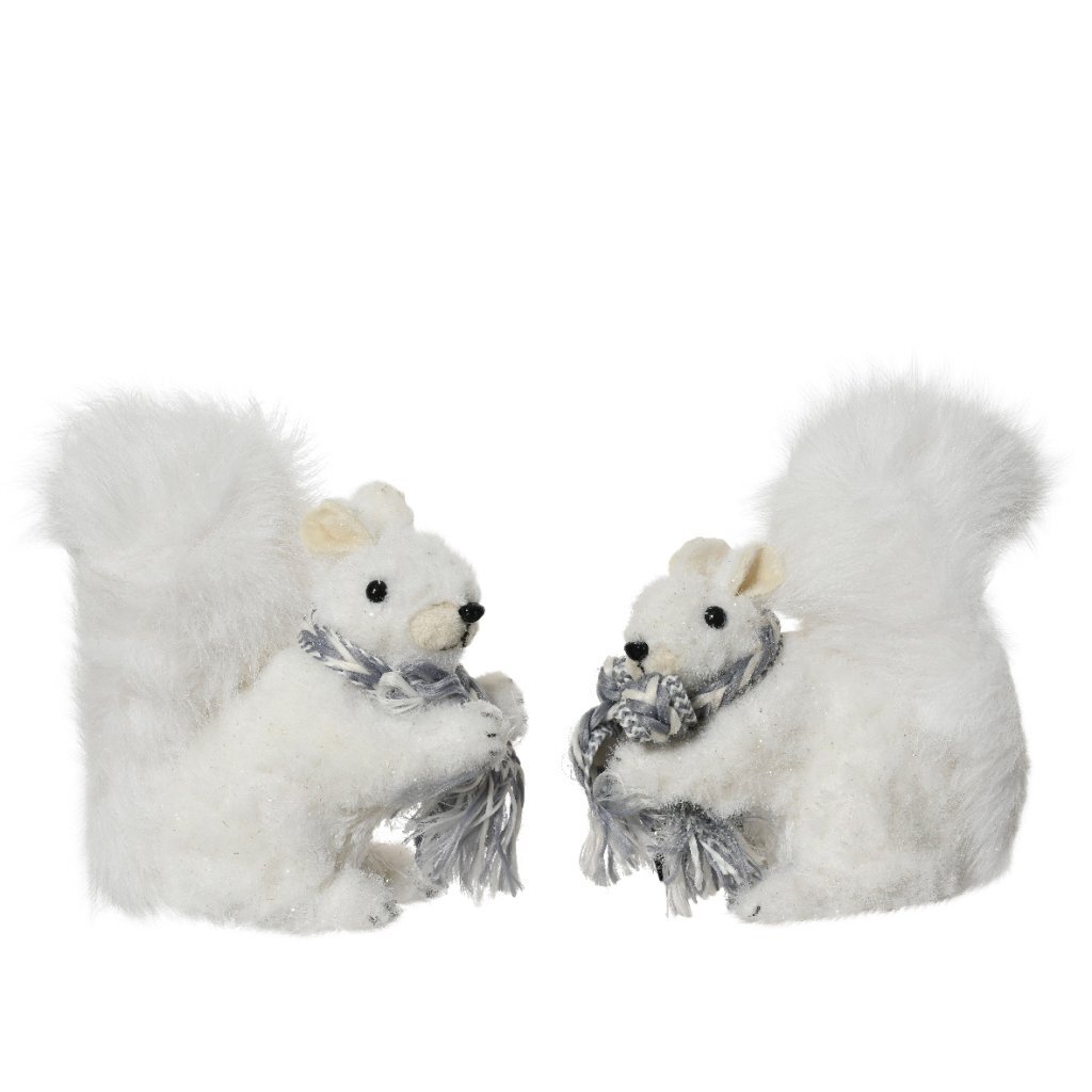 Witte decoratie eekhoorn van 13 x 7 x 15 cm. Verkrijgbaar in verschillende uitvoeringen. U kunt