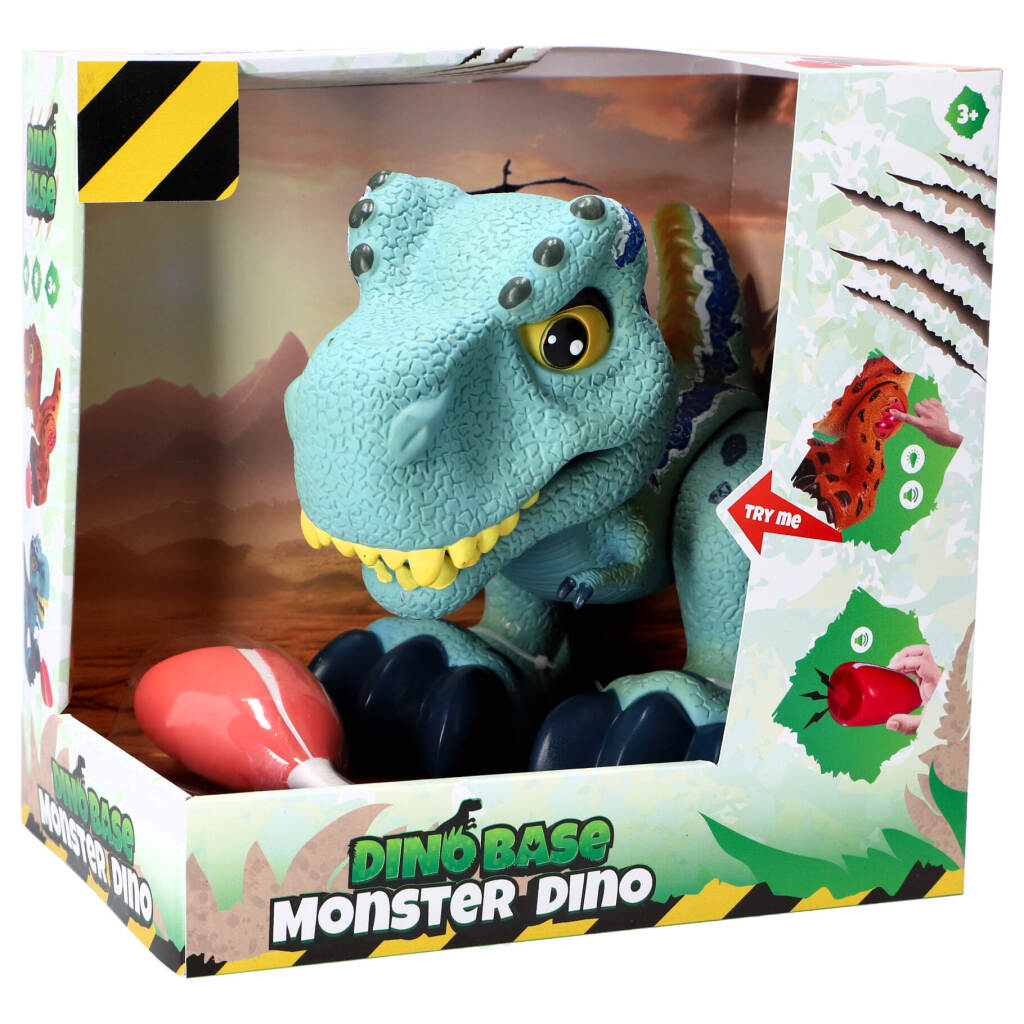 Dinobase blauwe monster dino met licht- en geluidseffecten. Geschikt voor kinderen vanaf 3 jaar.