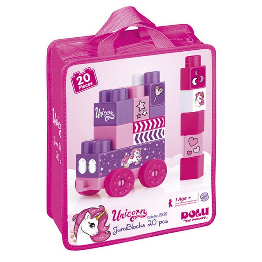 Dolu eenhoorn JumBlocks trein met 20 blokken, kleur: roze. Geschikt voor kinderen vanaf 1 jaar.