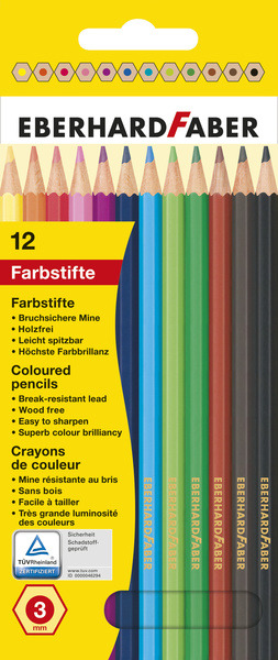 Kleurpotlood van uitstekende kwaliteit en hoge kleurintensiteit. Breukvast en makkelijk te slijpen, klassieke 6 hoekig kleurpotlood. In kartonnen of metalen etui. 17,5cm etui à 12 stuks assorti kleuren. Potlood is houtvrij.