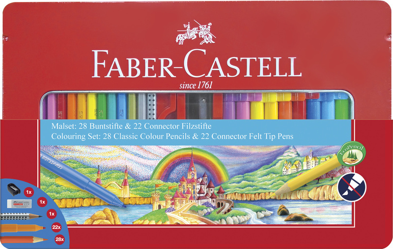 Inhoud: 28 hexagonale kleurpotloden. 22 Connector viltstiften, 1 potlood, 1 gum en 1 puntenslijper. De duidelijke indeling maakt de doos perfect om mee te nemen – evenals een mooi geschenk voor elke gelegenheid, van een verjaardagsfeestje voor kinderen tot een kleurrijke verrassing in een nieuwe schooltas