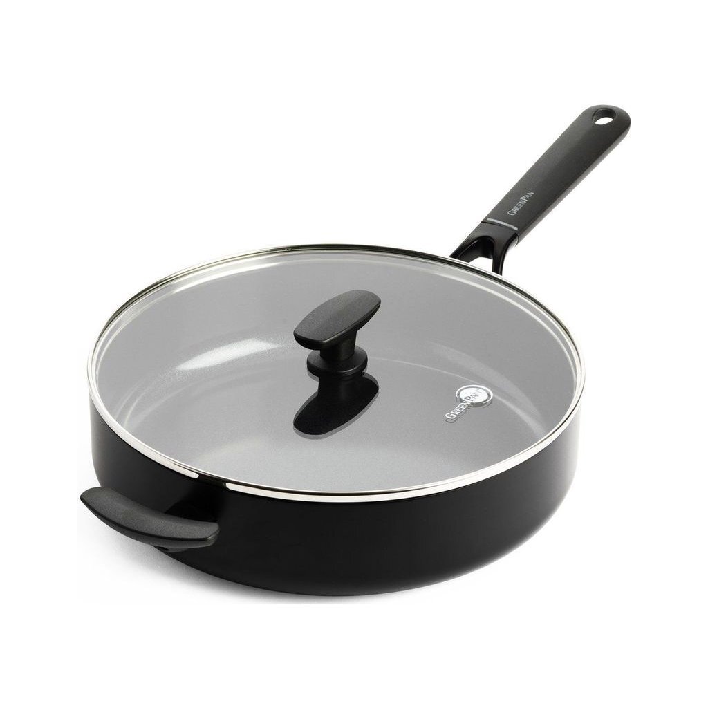 GreenPan Smart Shape hapjespan met glazen deksel Diameter: 28 cm Kleur: zwart PFAS-vrij Vaatwasbestendig Ovenvast tot