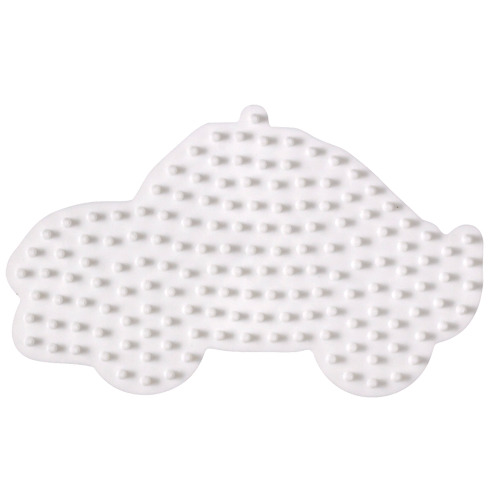 Strijkkralen kun je in bijna elk gewenst patroon leggen en dan door middel van strijkpapier en een strijkijzer samensmelten. Maar daarvoor heb je natuurlijk wel een grondplaat nodig. Witte grondplaat in de vorm van een auto.
