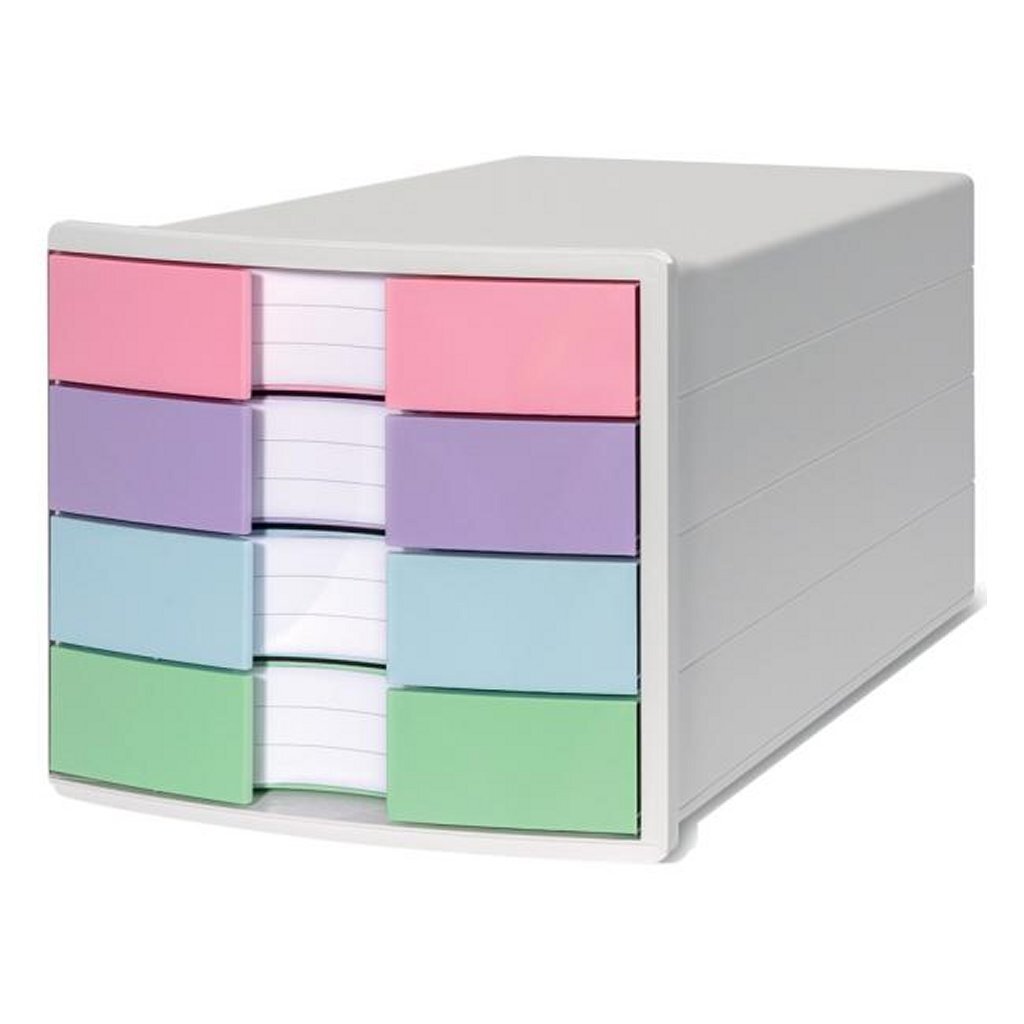 Witte ombouw met 4 gesloten laden. Voor het bewaren, verzamelen of sorteren van al uw bescheiden die u op uw werkplek onder handbereik wilt hebben. Laden voorzien van uittrekblokkering, met elegant geïntegreerde labelhouders. Beschrijfbare labels worden meegeleverd. Het zeer stabiele ladekastje staat op 4 rubberen voetjes en is tevens geschikt om er een beeldscherm op te plaatsen.