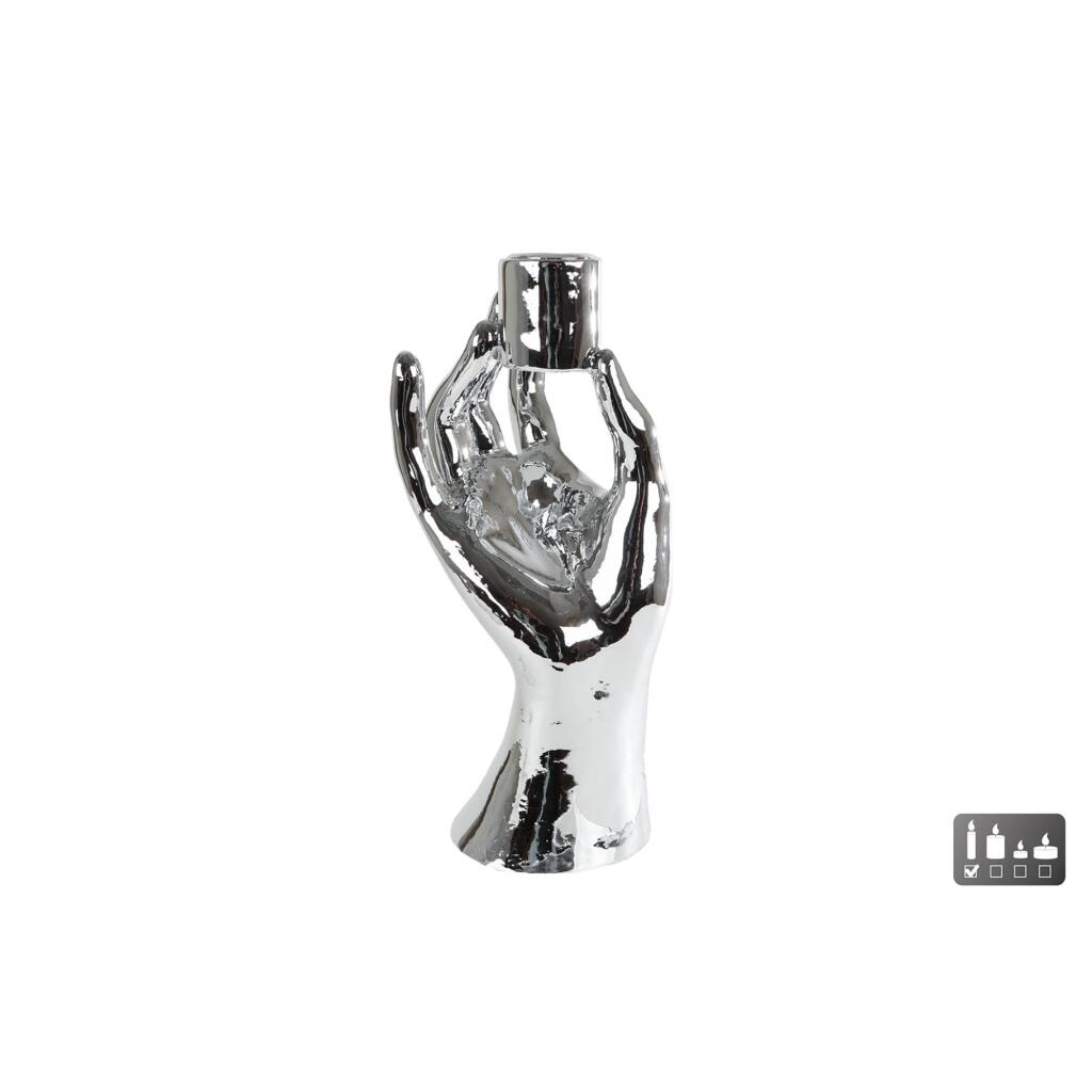 Kandelaar hand van 10 x 8 x 21 cm, kleur: zilver