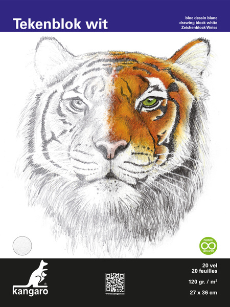 Kangaro K-5341 Tekenblok 27x36cm 120 Gr 20 Vel Wit Fijne Korrel KopgelijmdDit papier is ideaal voor