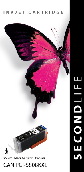 Deze cartridge (OEM No. 2024C000) bevat 27 ml. Kleur zwart en is geschikt voor de volgende printers: Pixma TR 7550, Pixma TR 8550, Pixma TS 6150, Pixma TS 6151, Pixma TS 6250, Pixma TS 6251, Pixma TS 6350, Pixma TS 705, Pixma TS 8150, Pixma TS 8151, Pixma TS 8152, Pixma TS 8250, Pixma TS 8251, Pixma TS 8252, Pixma TS 9150, Pixma TS 9155, Pixma TS 9550, Pixma TS 9550, Pixma TS 9551 C. SecondLife Inkjets zamelt gebruikte cartridges in en vult deze opnieuw met inkt van hoge kwaliteit. Het voordeel hiervan is dat er geen nieuwe behuizing hoeft te worden gemaakt en zo profiteert u van de A-kwaliteit cartridges voor een scherpe prijs. Ook zijn deze cartridges voorzien van hogere inktvolumes waardoor u meer kunt printen voor minder geld. SecondLife is daarom niet alleen voordeliger, maar het hergebruik van cartridges levert ook een positieve bijdrage aan het milieu. Doordat SecondLife zich volledig toegelegd op het zelf in handen hebben van de lege cartridges tot het eindproduct produceren ze met hun eigen leeg goed. Dit levert een aantal voordelen op. In de eerste plaats is er totale controle over de kwaliteit. Doordat de cartridges zelf worden ingezameld weten zij precies de herkomst en kwaliteit van het product. Daarnaast kunnen ze goedkoper produceren doordat er een aantal schakels uit de keten verdwenen zijn.
