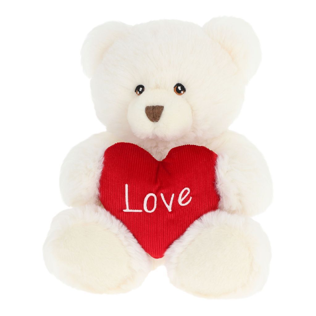 Keeleco witte knuffel beer met hart, 30 cm groot