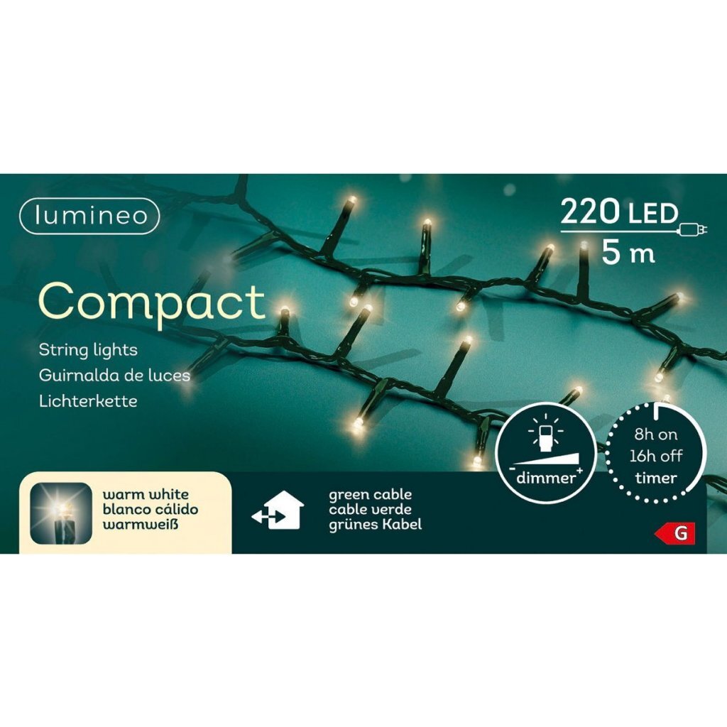 LumineoCompactLED snoer 220 LED lampjes Steady lichtstand Dimbaar Timerfunctie: 8 uur aan, 16 uur uit Lengte