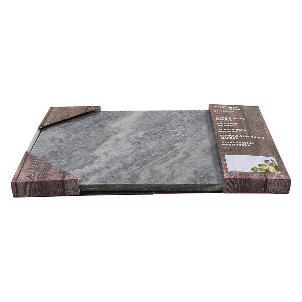 Marmeren snijplank natuurproduct met elk een uniek patroon. Afmeting: 21 x 29 x 1 cm. Kleur: grijs.