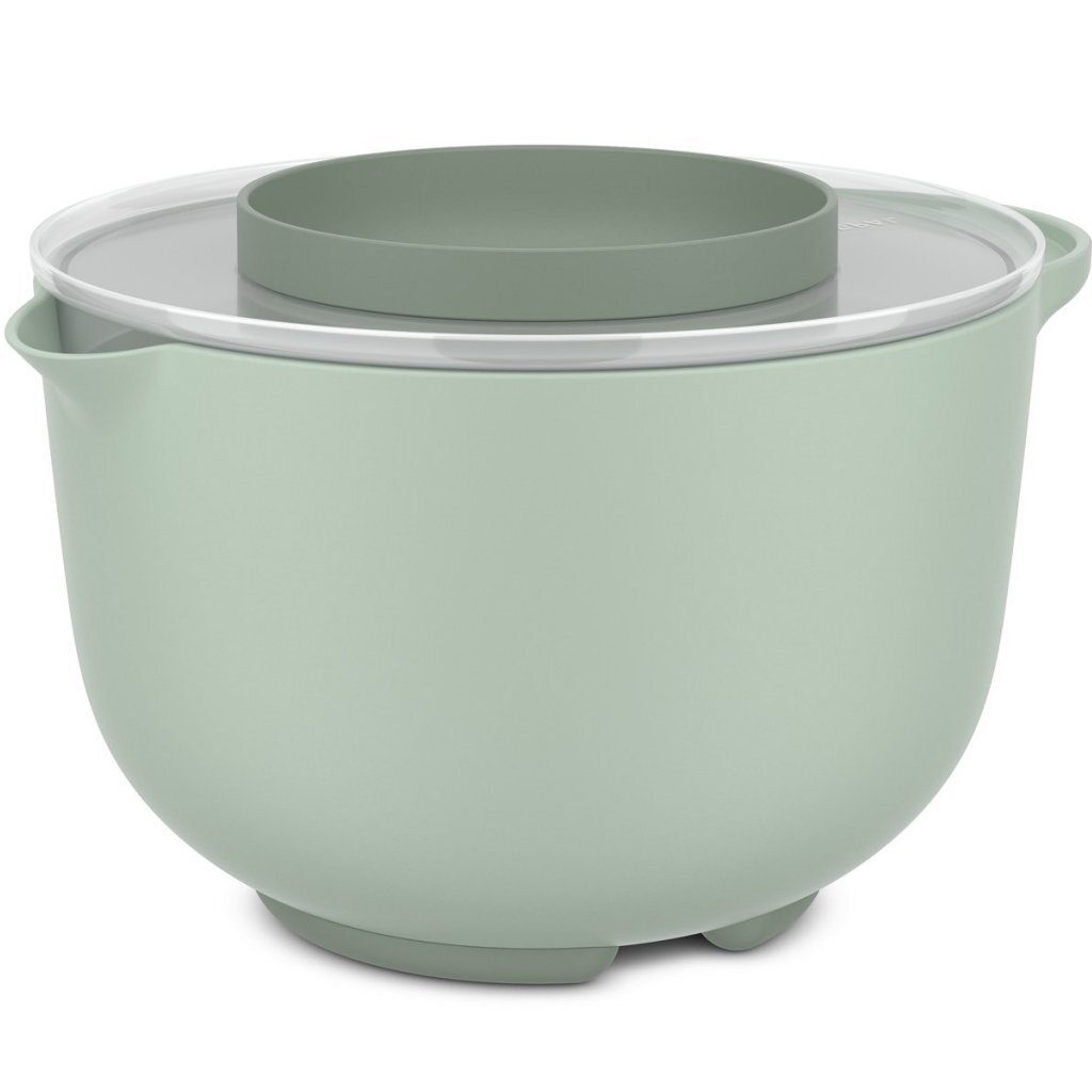 Mepal beslagkom met spatdeksel Inhoud: 3 liter Kleur:sage groen Voorzien van een handige schenktuit en stevige