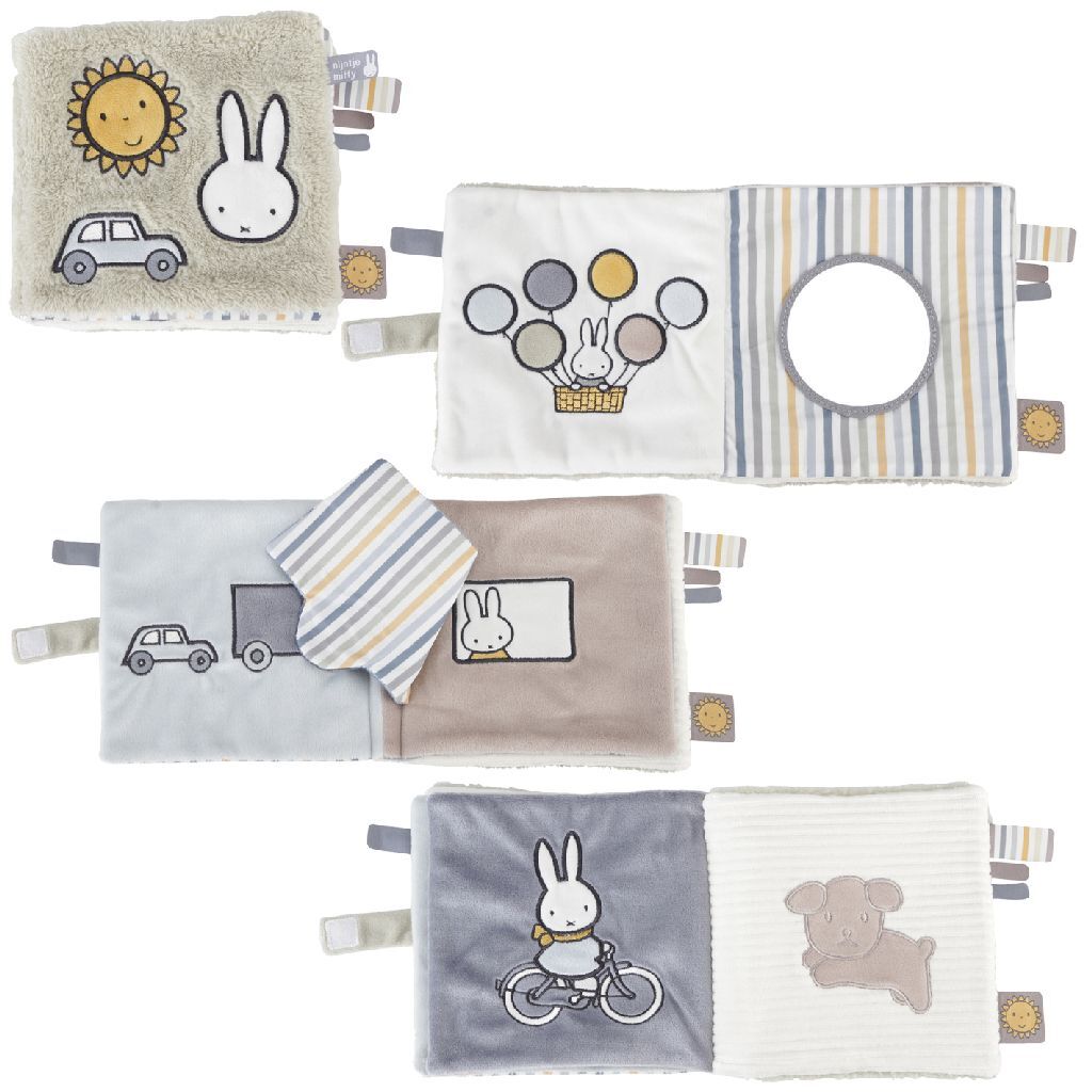 Dit vrolijke boekje van Nijntje zit vol verrassingen! Het boekje makkelijk vast te houden en is extra zacht door de pluizige stof op de kaft. Er zijn tal van activiteiten te ontdekken zoals knisperpapier, een spiegeltje, een flapje en labeltjes om aan te voelen. Ook is er gebruik gemaakt van verschillende soorten stof. Er zit een klein lusje aan het boekje om het eventueel ergens aan te bevestigen.