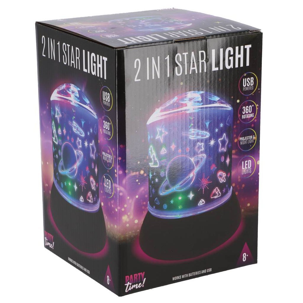 Party Time 2in1 LED StarlightCreëer een sfeervolle sterrenhemel met deze stijlvolle LED-lamp! Met een elegante zwarte
