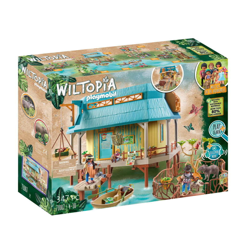 In hetPlaymobil 71007 Wiltopia dierenverzorgingscentrum worden de dieren van het regenwoud verzorgd. Het centrum van 2 verdiepingenomvat behuizingen,een dierengeneeskundigeruimte met behandeltafel, er kunnen röntgenfoto’s worden gemaakt en er is een warmtelamp (werkt op 2x AAA-batterijen). Ook heeft de set een onderzoekslaboratorium een aanlegsteiger met roeiboot en een goederenlift.DeWiltopia lijn bestaat voor meer dan 80% uit duurzaam materiaal. 347-delig. De set is geschikt voor kinderen vanaf 4 jaar.