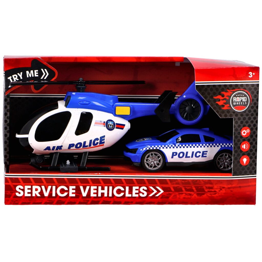 Rapid Wheels politiehelikopter en automet licht- en geluidseffecten. Geschikt voor kinderen vanaf 3 jaar.