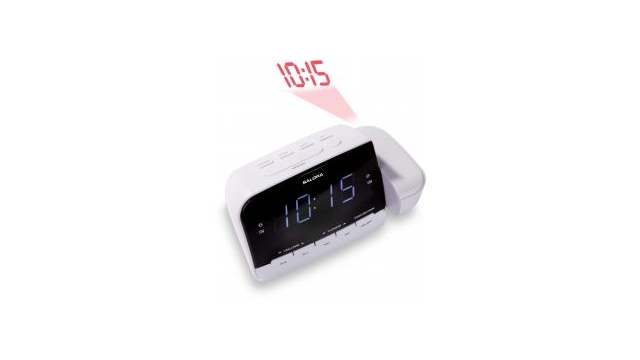Alarmklok met AM/FM radio, sleepfunctie, snoozefunctie en tijdsprojectie.