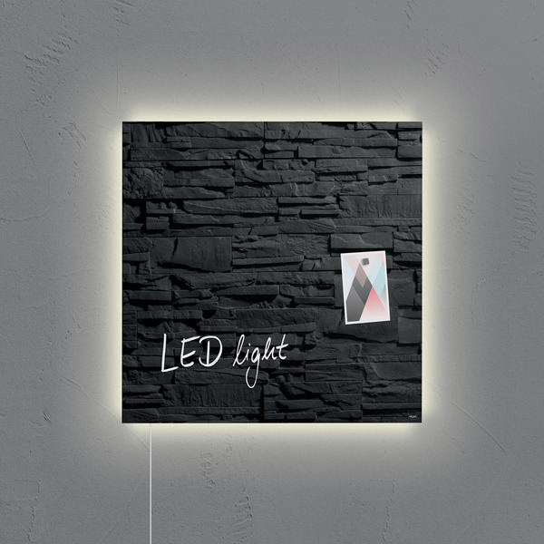 Glas-magneetborden artverum met LED verlichting zijn ware kunstwerken en een lust voor het oog. De op vierkant of rechthoek gereduceerde vormen van de artverum serie werken alleen, maar ook als combinatie van verschillende formaten en vormen helemaal in de zin van “style your room”. Design objecten in combinatie met LED verlichting is een echte Must-have. Glas-magneetborden zijn borden die aan de wand worden bevestigd – op kantoor, in vergaderruimtes of thuis. Ze zijn te beschrijven, magnetisch en te gebruiken als sfeerverlichting, tevens dienen ze naast hun pure esthetische functie, ook voor verschillende gebruiksdoeleinden. Garantie; 25 jaar op het glasoppervlak-www.sigel.de/garantie (bij gebruik van de Sigel glas-magneetbord accessoires). Kleur leisteen. Formaat 480x480x15mm. Inclusief 2 magneten. Incl. LED verlichting met euro-stekker en trafo.