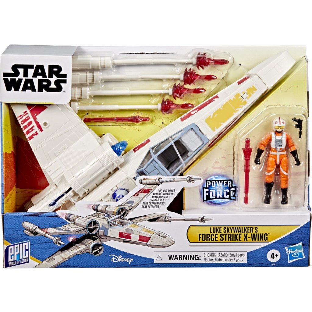 Geef spelen een nieuwe dimensie met de Star Wars Epic World of Action Luke Skywalker’s Force Strike X-wing! Bij dit Luke Skywalker-speelgoed horen de X-wing Starfighter, een Luke Skywalker-actiefiguur en 3 accessoires. Zet de Luke Skywalker-actiefiguur in de cockpit en plaats een projectiel in de poort van het schip. Je bent er nu klaar voor om de Death Star neer te halen! Lanceer projectielen met een druk op de knop en ontketen de kracht van de Force door de schuifjes bovenop het schip te bedienen, voor blauwe transparante Force-explosie-effecten. Geschikt voor kinderen vanaf 4 jaar.