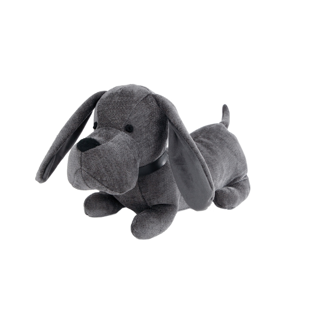 Stoffen deurstop teckel van 38 x 15 x 18 cm, kleur: donkergrijs