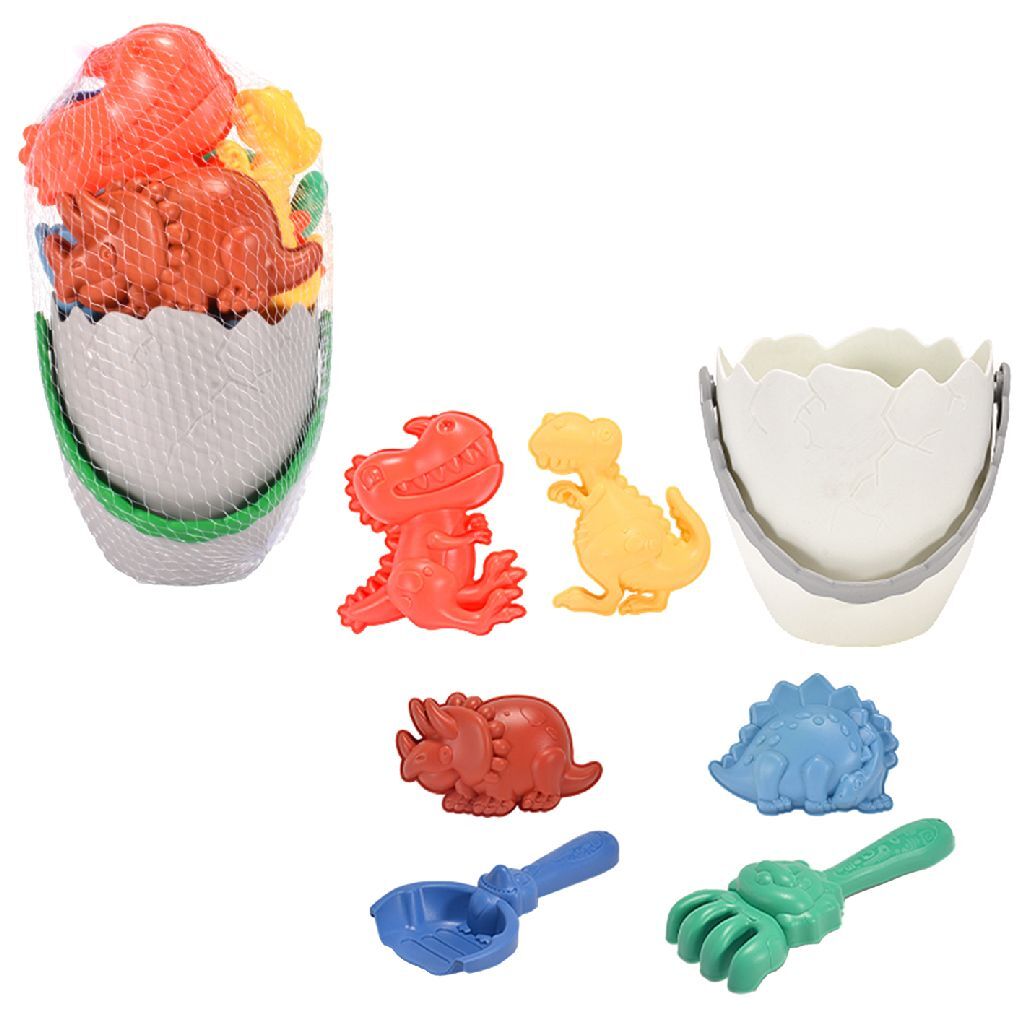 Maak een dagje strand nog leuker met deze Summertime dino emmerset. Uitgevoerd in dino ei. Het setje bestaat uit een emmer, 4, zandvormen, een schepje en een harkje. Geschikt voor kinderen vanaf 18 maanden.