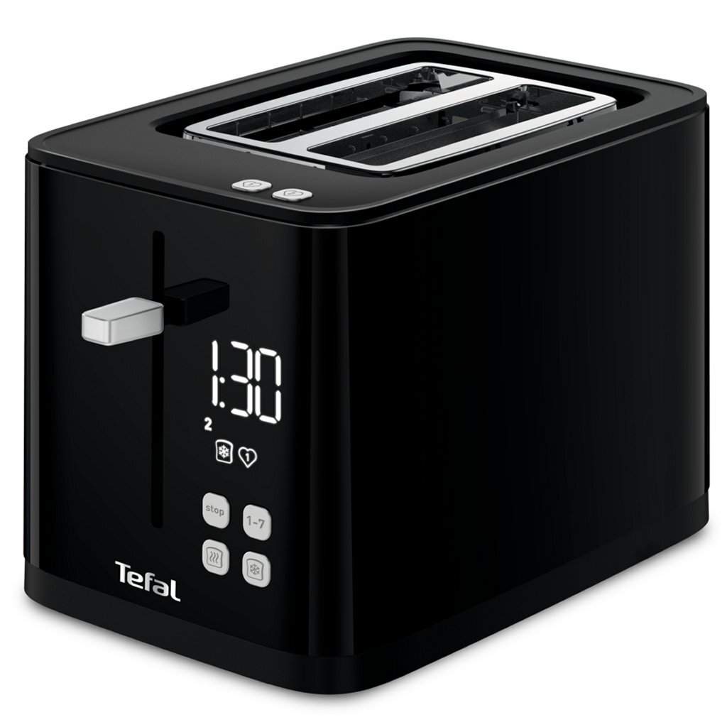 Geniet van perfect gebruinde toast met de slimme Tefal toaster die intuïtief te gebruiken is. Dit gestroomlijnde broodrooster met twee sleuven laat je je voorkeursinstellingen opslaan, zodat ze met één druk op de knop te activeren zijn. Zo kan je altijd van toast genieten die op jouw favoriete manier bereid is. Het naadloze digitale scherm telt af tot je toast klaar is; daarnaast heeft dit broodrooster met twee sleuven ook zeven bruiningsstanden, van licht goud tot extra knapperig voor resultaten op maat. Verder heeft de broodrooster handige functies zoals Stop-, Ontdooiing- en Opwarmknoppen met controlelampjes, sleuven waarvan de breedte ingesteld kan worden, zodat het brood altijd precies in het midden gepositioneerd is, een uitneembare kruimellade voor eenvoudig schoonmaken en een high-lift systeem voor het eenvoudig uitnemen van geroosterd brood. Ook staat het gestroomlijnde en intuïtieve design perfect op het aanrecht van elke moderne keuken.