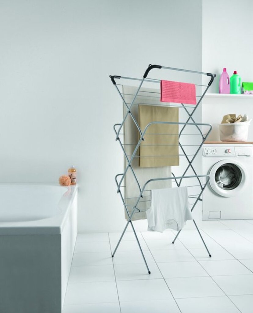 De Concerto droogtoren is een mooi design en heeft 14 meter drooglengte. Bij gebruik is de afmeting 63x47x137 cm. Je kunt er zowel broeken als handdoeken aan drogen. Op de 4 bovenhoeken kun je ook klerenhangers hangen. De Concerto is heel gemakkelijk te gebruiken en in te klappen door middel van zijn 2 handvaten. Het Concerto droogrek behoort tot de Tec collectie welke zich kenmerkt door een zilverkleurige antistatische Epoxy coating in combinatie met satijnzwarte kunststof onderdelen. De Epoxy coating is een materiaal dat het elektrostatisch worden van de kleding tegengaat. Na gebruik buiten, binnen opbergen. 3 jaar garantie. Made in Italy.