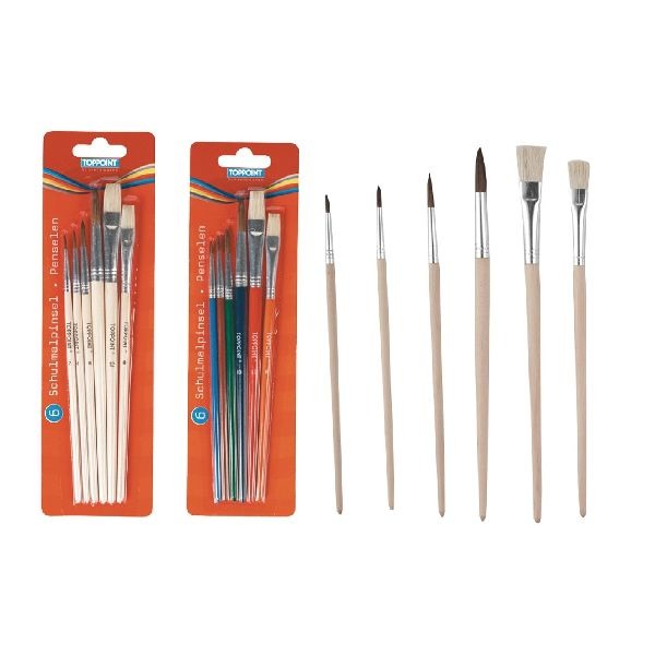 6-delige penselensetin de maten 2 t/m 12. Verkrijgbaar in 2 uitvoeringen. U kunt niet kiezen, maar ontvangt een willekeurige uitvoering.