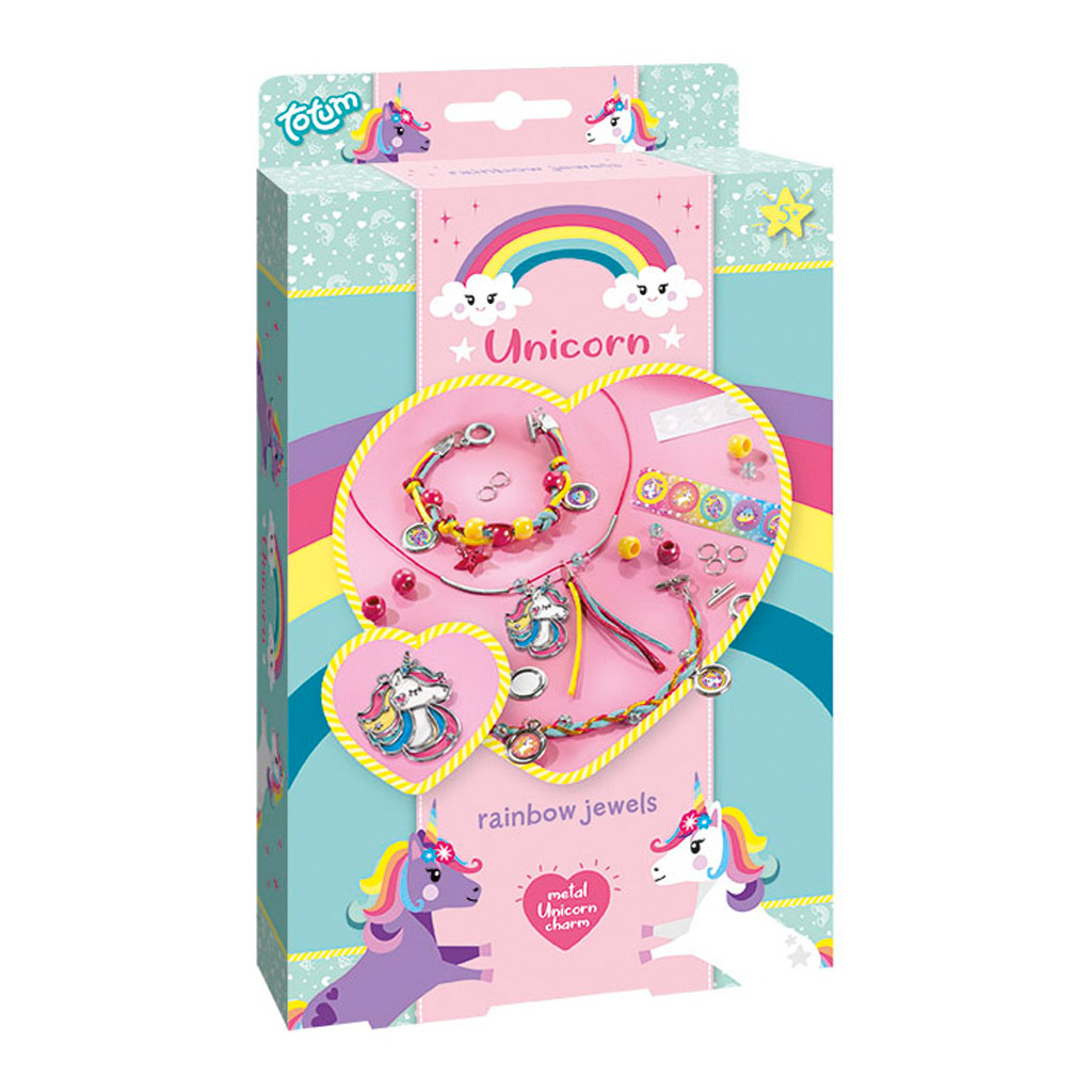 Totum eenhoornsieraden maken. Met o.a. kralen, stickers en een metalen eenhoorn bedel. Geschikt voor kinderen vanaf