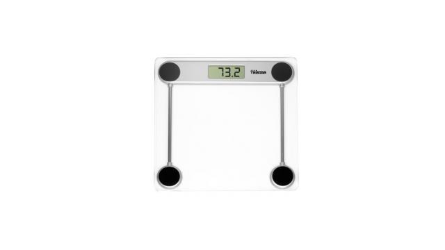 Het fraai vormgegeven plateau is gemaakt van veiligheidsglas. Hij is eenvoudig in gebruik en gaat aan zodra u er op gaat staan. De weegschaal weegt tot 150 kg en geeft, op het makkelijk af te lezen digitale display, het gewicht per 100 gram weer.