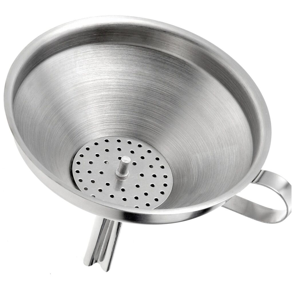 Westmark vultrechter met uitneembare zeef voor het snel en eenvoudig vullen van flessen met een opening van minstens 1,3 cm; ook geschikt voor het vullen en overgieten van suiker in suikerstrooiers. Met de trechter ku je vullen zonder morsen: praktische trechter van hittebestendig roestvrij staalmet eenbrede vulopening (5,5 cm) voor eenvoudig overgieten; met verwijderbare zeef om zaden of pulp op te vangen.