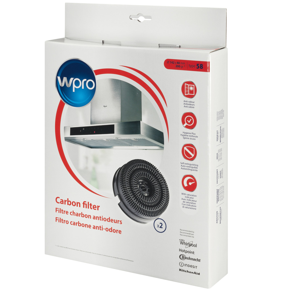 Wpro Koolstoffilter 58 Hygiëne Plus: met zijn absorberend vermogen beschermt het filter de verspreiding van bacteriën